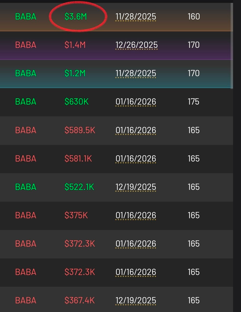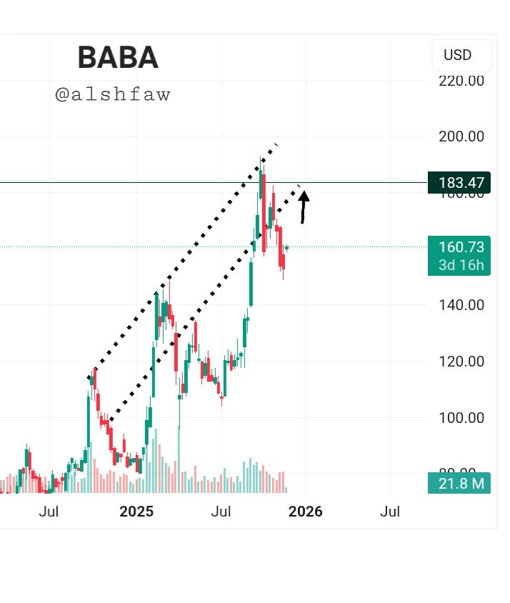 $BABA Earnings Report.Astro ZanNov 25, 202541Share$BABA Earnings Report.Geometric bullish case stops at $183.47 first resistance level. Bearish case $150 support.See also the top $ spent today on calls and puts of BABA. Data source: CheddarFlowPreviousNext